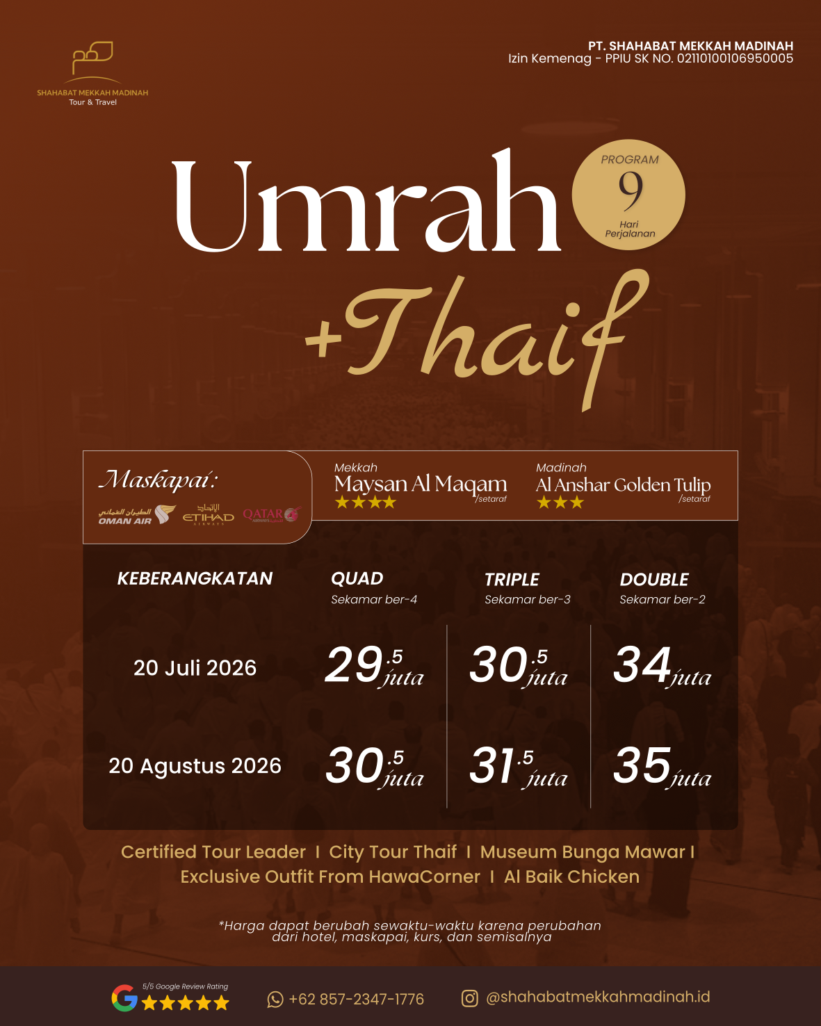 Seluruh track record perjalanan kami terdokumentasi dengan baik dan dapat diakses secara terbuka sebagai bukti kualitas layanan kami. Dengan pengalaman dan dedikasi tim di lapangan, Shahabat Mekkah Madinah siap menyambut Anda untuk memulai perjalanan suci ini dengan penuh ketulusan dan profesionalisme.